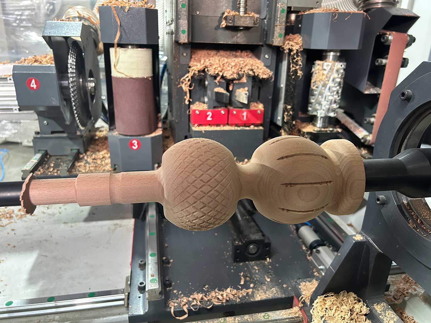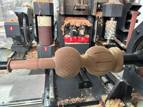 5軸數控車床一共14工序, 自動上下料,有RTCP 功能。可以車,銑,鋸,鉆孔,拉槽,鏤空,自動砂光, 多功能一體機。